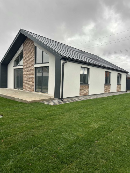 Будинок площею 102 м² на ділянці 5 соток. Побудований із газоблоку 300 мм та утеплений мінеральною ватою 100 мм.
