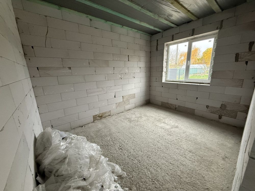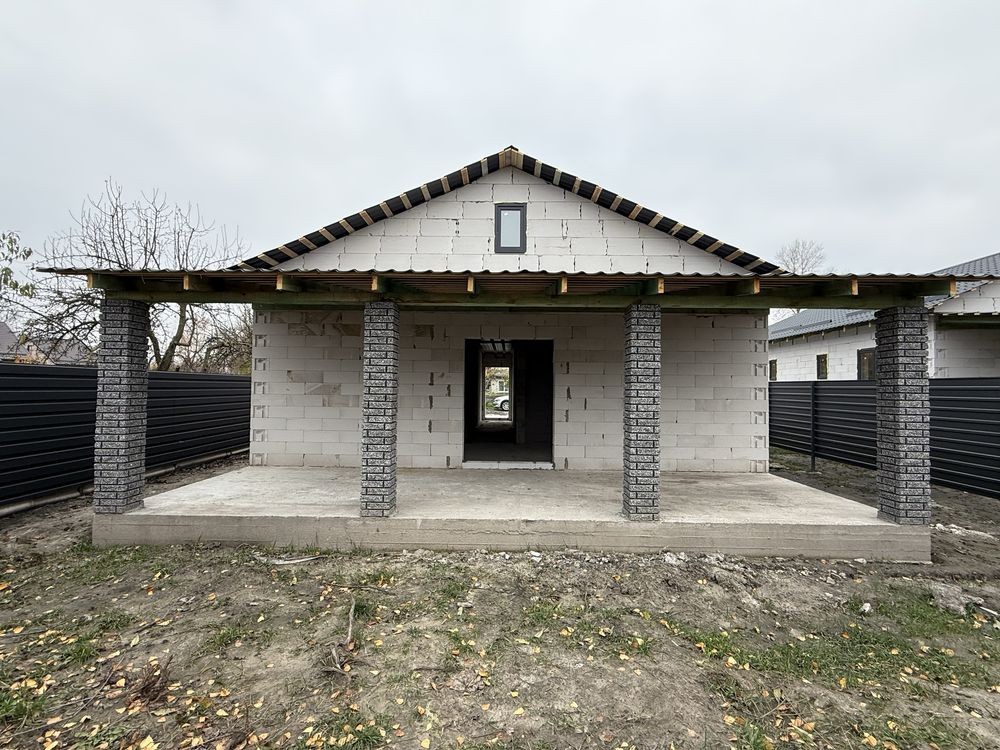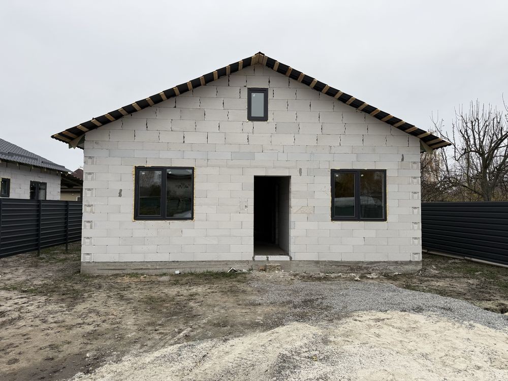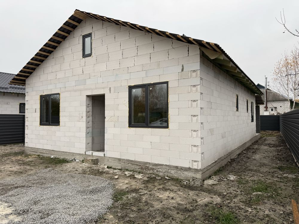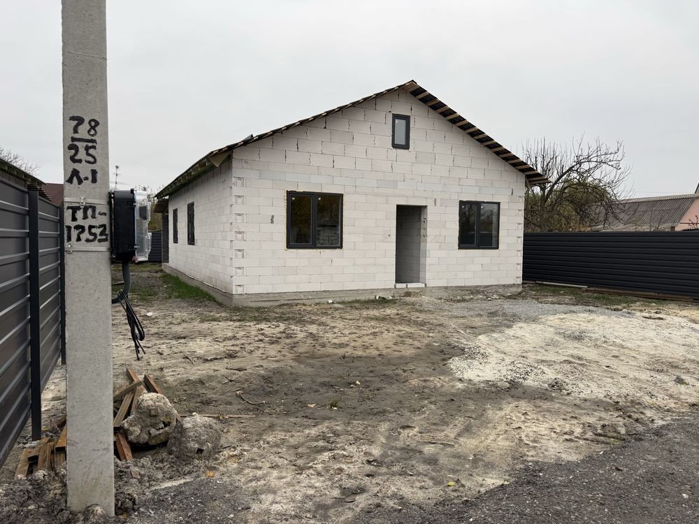 Продаж будинку 95 кв.метрів, 3 кімнати, 2 санвузли, кухня вітальня, велика тераса, встановлені м/п вікна, скважина 70 метрів, септик . Підключене світло 12кВт, 3 фази