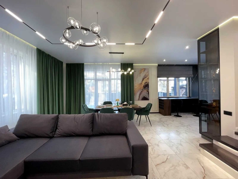 • Сучасне освітлення, штори, меблі — все продумано до деталей