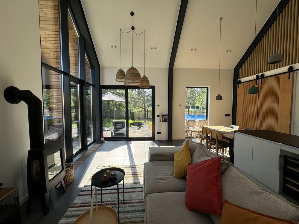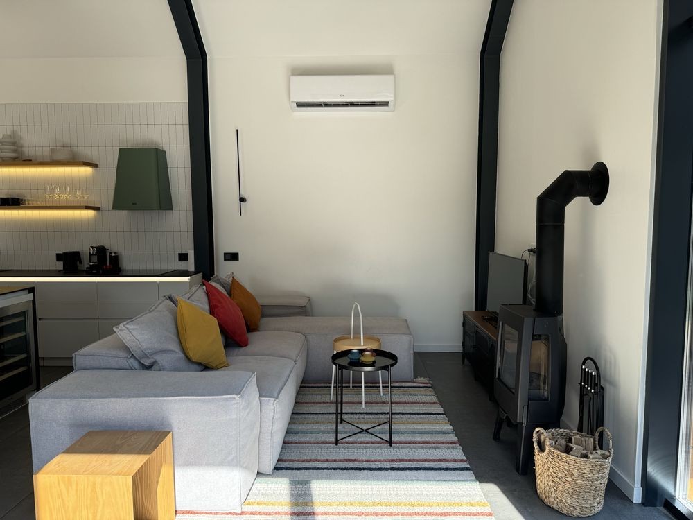 У вітальні встановлена скандинавська пічка, якою можна всього за годину обігріти ввесь будинок;