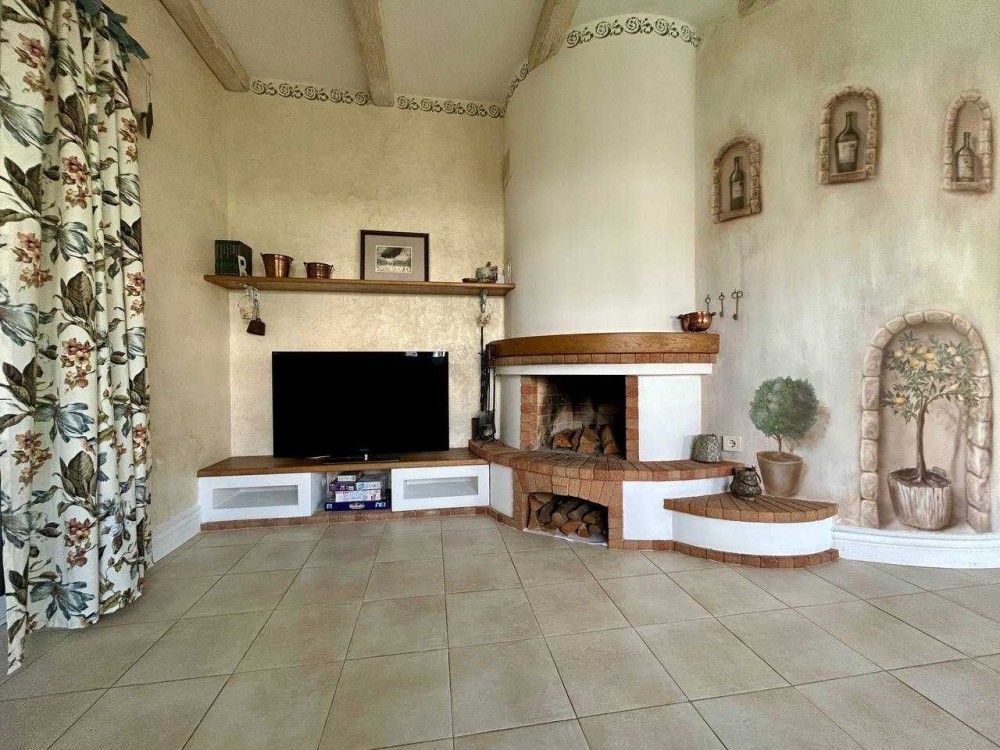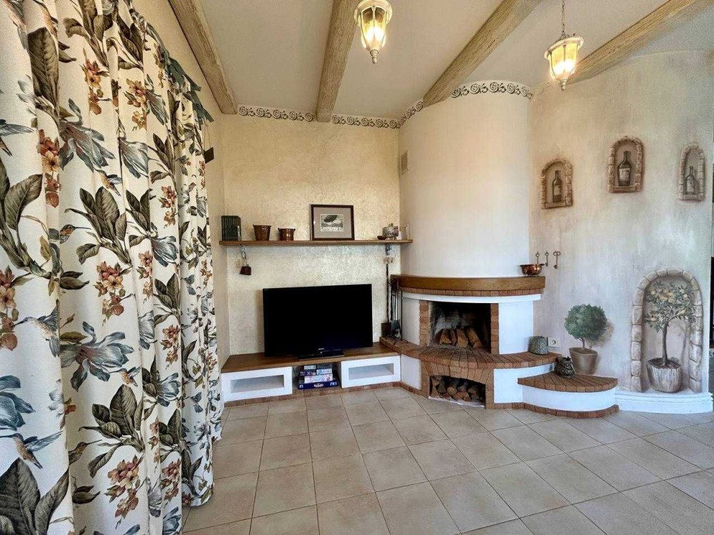 • простора кухня та вітальня з каміном;