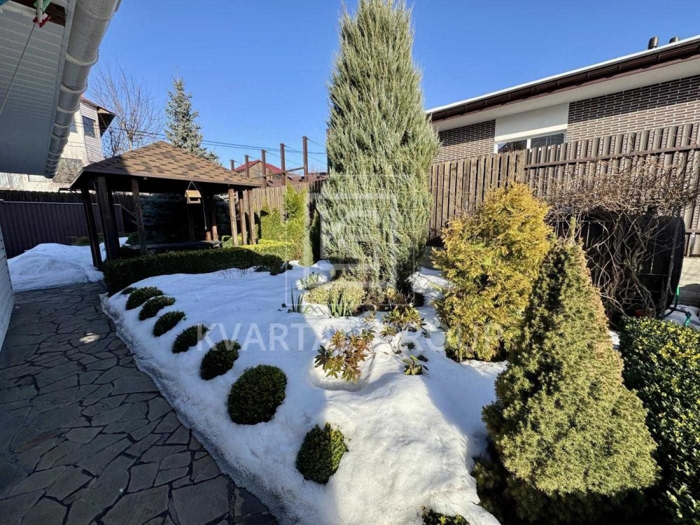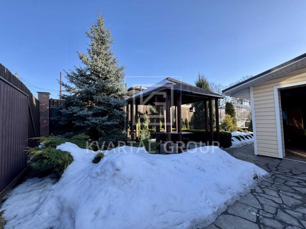 На ділянці є садок, декоративні рослини, альтанка, гараж 28 м2 з підвалом, дровник.