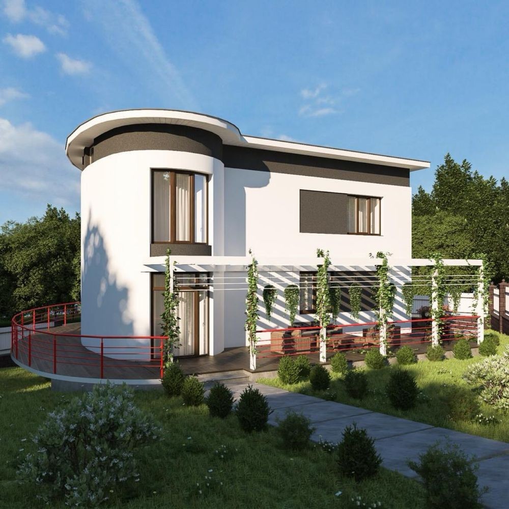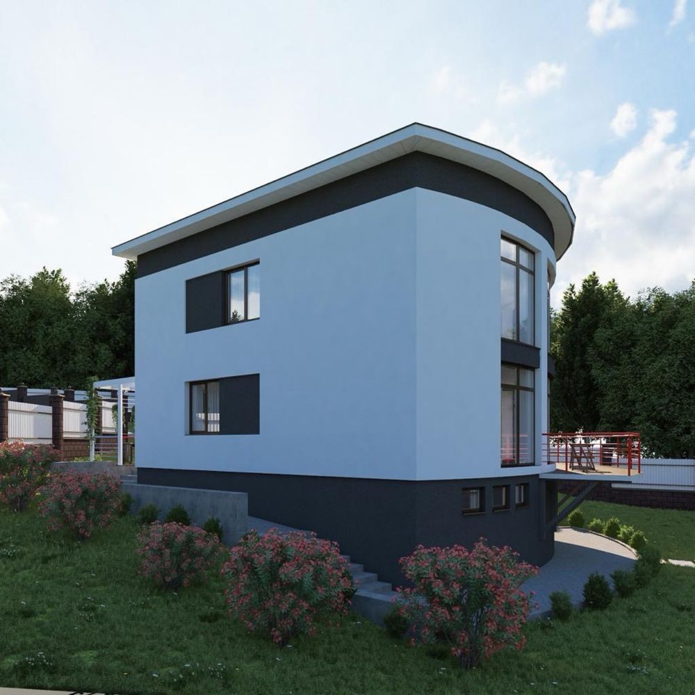 Будинок побудований із газоблоку, утеплений мінеральною ватою, перекриття — залізобетонні. Виконані всі фасадні роботи. Усередині проведені всі комунікації (електрика, вода, опалення), зроблена тепла підлога, стяжка підлоги та шпаклівка стін.