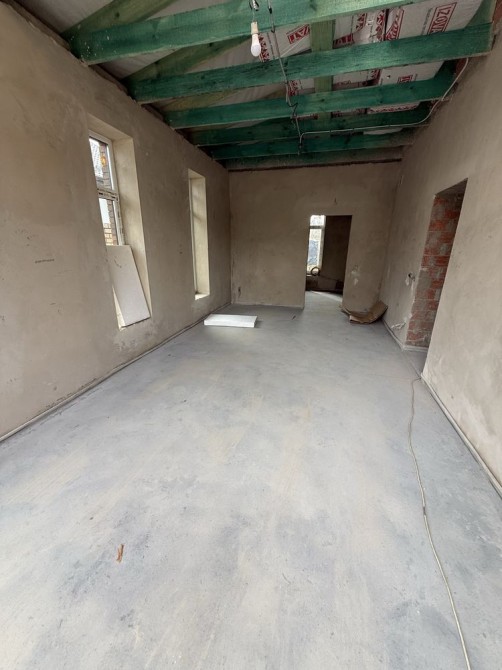 В будинку виконані штукатурні роботи, розведена електрика, тепла підлога та стяжка.