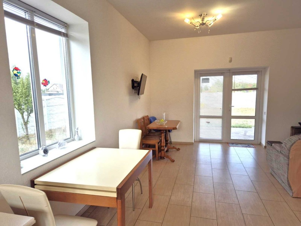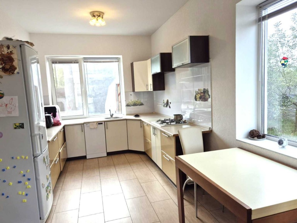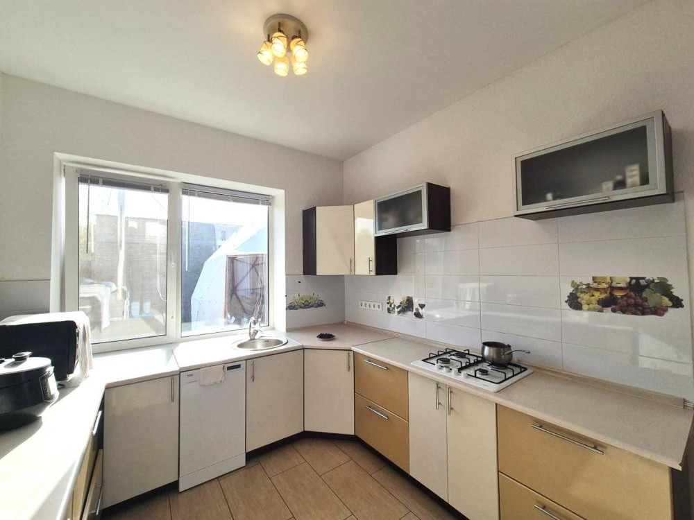 Будинок одноповерховий 90м2, з ремонтом, та необхідною технікою. Ремонт виконаний в світлих нейтральних кольорах, що відповідає сучасним вимогам до облаштування інтер’єру. По всьому будинку водяна тепла підлога, плитка- якісний керамограніт, довго тримає тепло. Білі шпалери, натяжні стелі. Якісна сантехніка в санвузлах. Ремонт добротний, робився для власного проживання, не для продажу.