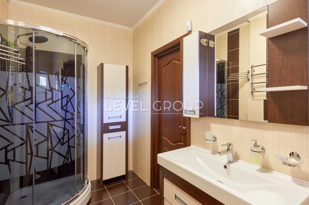 Продаж БЕЗ комісії. Сучасний будинок з новим ремонтом в мальовничому місці, поряд із чудовим озером. Розташований біля с.Мощун у закритому містечку "Джерело". Хвойний ліс, велике озеро, охорона 24/7, гарні сусіди - ідеальні умови для спокійного життя. На іншому березі озера - комплекс відпочинку Пуща Лісова. До Києва 20 хвилин: по варшавці через Горенку або через Пущу-Водицю (12 км від КП Пуща-Водиця). Ціна 270000 дол. Загальна 250 кв.м.+ Тераса 20 м. На 1 поверсі: передпокій, санвузол, гостьова спальня або кабінет , кухня - вітальня з чудовою фінською піччю - каміном та виходом на терасу. На 2 поверсі: 3 спальних кімнати (одна - з власною ванною та гардеробом), санвузол. Цокольний: зона відпочинку, великий хамам, санвузол, технічні приміщення з окремим виходом. Будинок дуже комфортний і головне - ще ніхто не жив! Стіни - керамоблок / клінкерна цегла, утепленний мінватою 100 мм. Дах - бітумна черепиця ONDULINE, утеплення 300 мм. Вікна REHAU (3-камерні). Новий стильний ремонт - якісні та довговічні матеріали. Підлога - плитка Італія, парккет Норвегія. Стіни та стеля - фінська фарба, пробка Португалія, шпалери (Ламборгіні, Трусарді) Італія. Світло - люстри Італія. Меблі - дуб і груша. Сантехніка - Італія. Опалення - сучасний тепловий насос, збереже ваші гроші та екологію навкруги! Тепла підлога скрізь, в спальнях радіатори. Гаряча вода - тепловий насос/бойлери. Електрики 32 кВт. Зроблено виведення кабелів у двір для генератора та зарядки електроавтомобіля, а також на даху - для сонячних панелей. Власний септик (2 х 3 м3), центральне водопостачання + 2 власні свердловини з фільтрами (130 м, Сеноманського водоносний горизонт). Ділянка рівна, є зона барбекю, є власний льох(погреб). Сховище для палива. Автоматичні ворота. Крита парковка на 2 авто, є місце для авто гостей. будинок, стіни: керамічна цегла; житлових повірхів: 2; ділянка: 7 сот.
