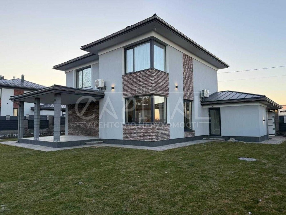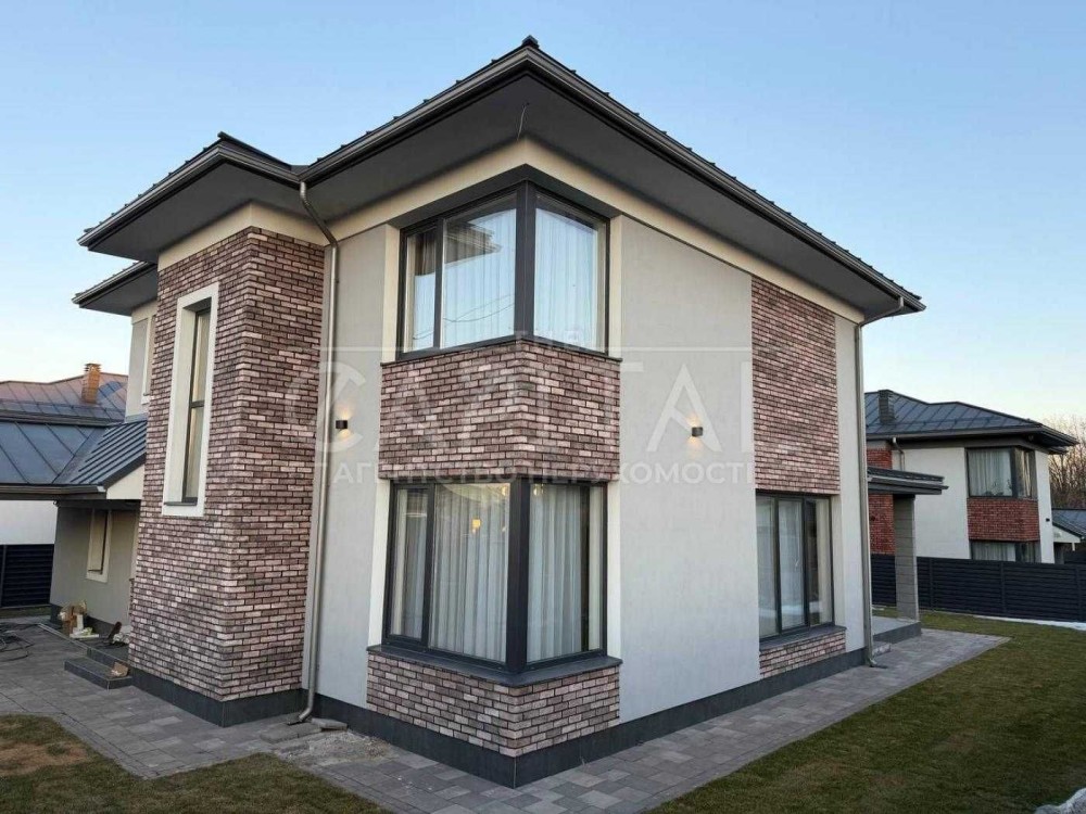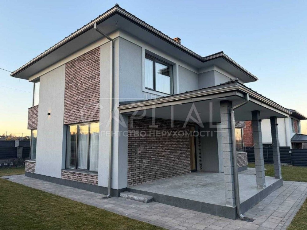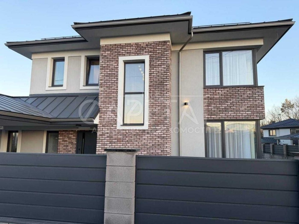 Пропонується на продаж сучасний двоповерховий будинок площею 200 м² у закритому котеджному містечку в мальовничому передмісті Києва.