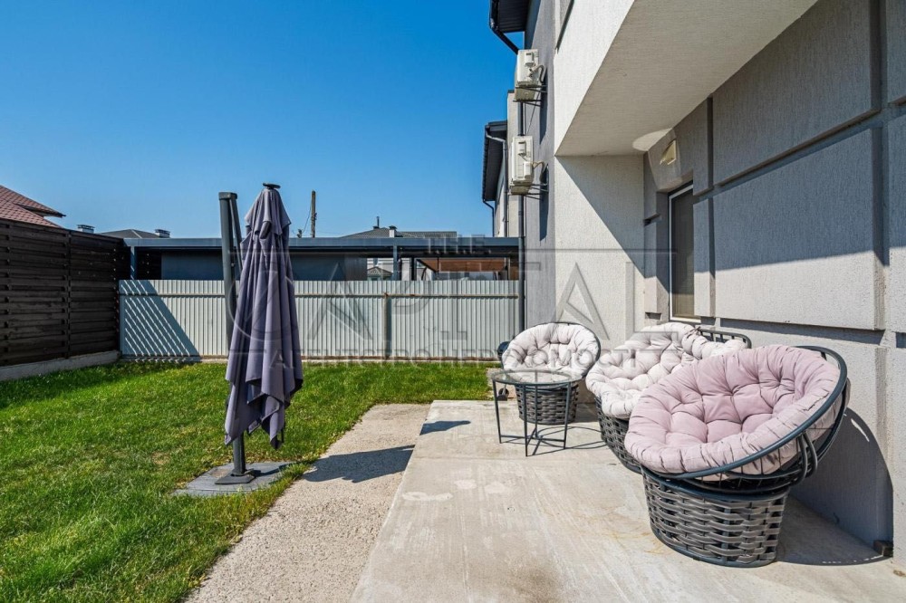 Передбачене паркування на 3 авто. Ділянка — 4 сотки, засіяна газоном.