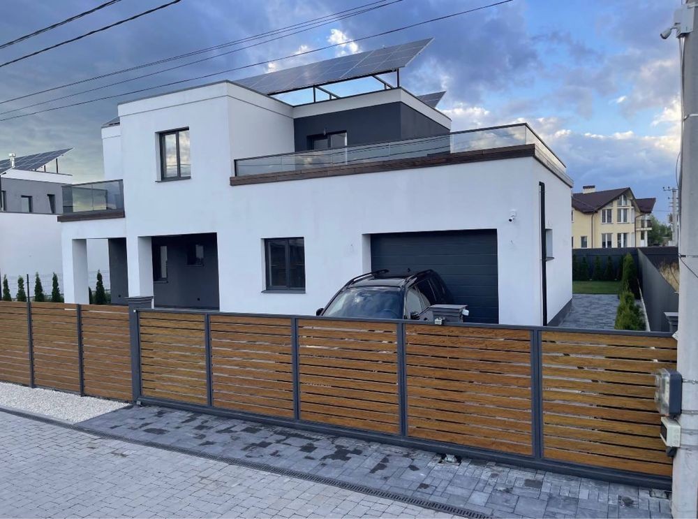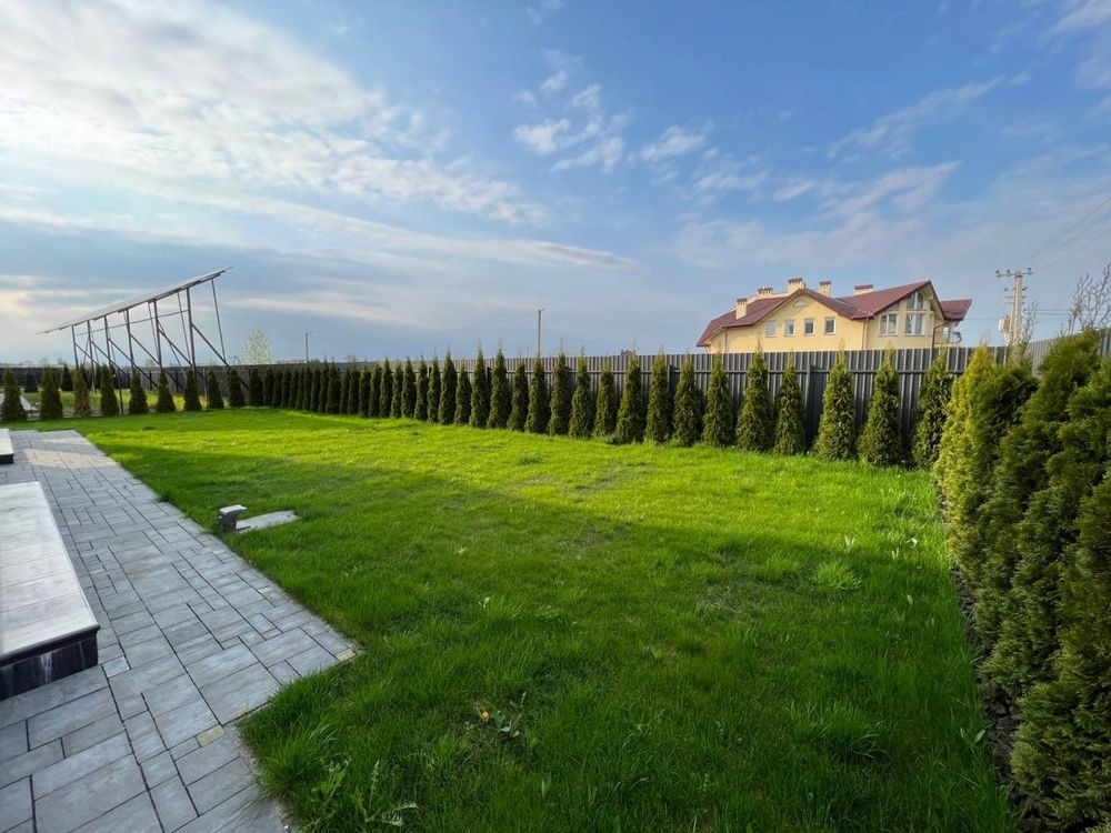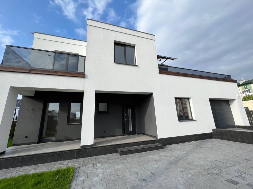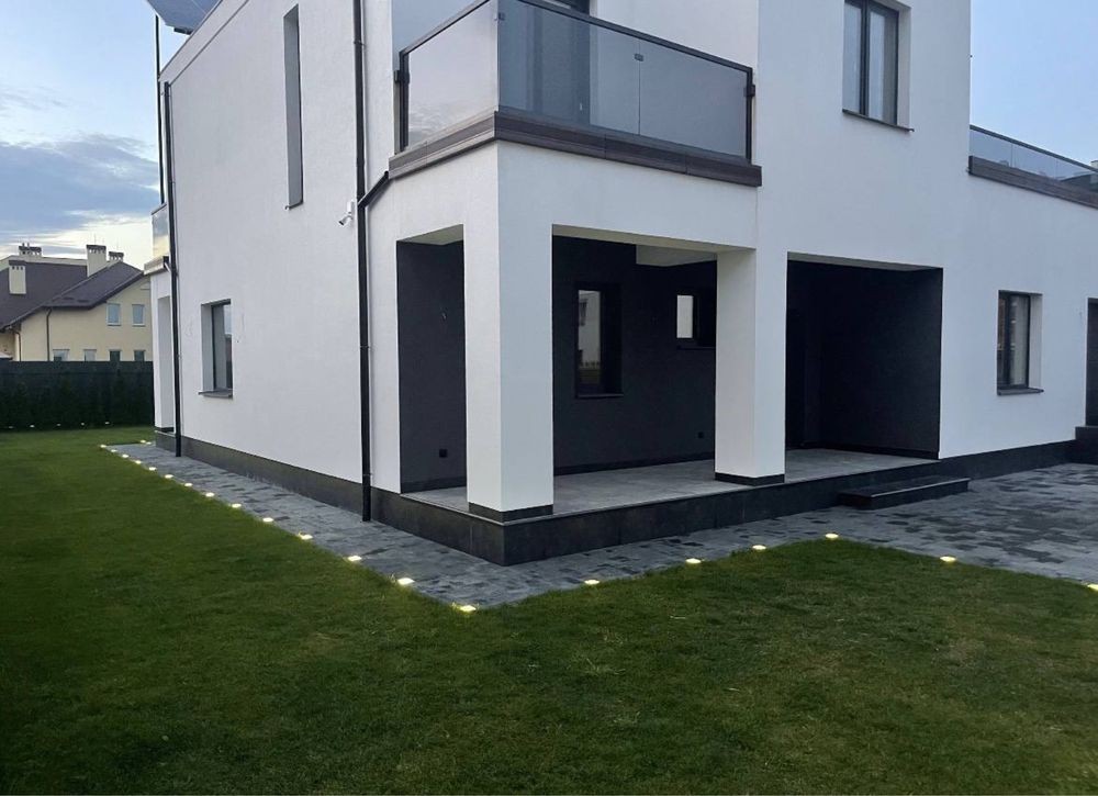 Повністю готовий будинок із благоустроєм, в закритому катеджному містечку. Автоматичний полив газону, автоматичний робот газонокосарка. Підігрів бруківки та сходинок (щоб не чистити сніг). Лед підсвічування по всьому периметру будинку. Центральне водопостачання, центральна каналізація + септики. Сонячна електростанція на 30кВт ( розрахована перекривати всі витрати з опалення та споживання електроенергії) на даний момент приносити +300-600 $ щомісяця. Відеоспостереження з можливістю підключення сигналізації (розпізнавання осіб тощо). Велика тераса і балкони обшиті гартованим склом і термоясенем (гарантія на монтаж 5 років, на дошку 20). Доглянутий газон та висаджені туї, які вже прижилися. Всі спальні обладнані індивідуальним санвузлом та стаціонарним гардеробом. Залишилося зробити ремонт у середині на ваш смак. Ціна 1550$ за м.кв., (як мінімальна ціна м.кв. квартири в багатоквартирних будинках), в даному випадку 8 соток землі виходить у подарунок. До центру Львова 20-30 хвилин їзди в залежності від завантаженості доріг. У 3-х хвилинах два великі магазини, аптека, кафе, церква, втобусна зупинка. Відмінне та тихе місце для сім'ї в максимальній близькості до міста.