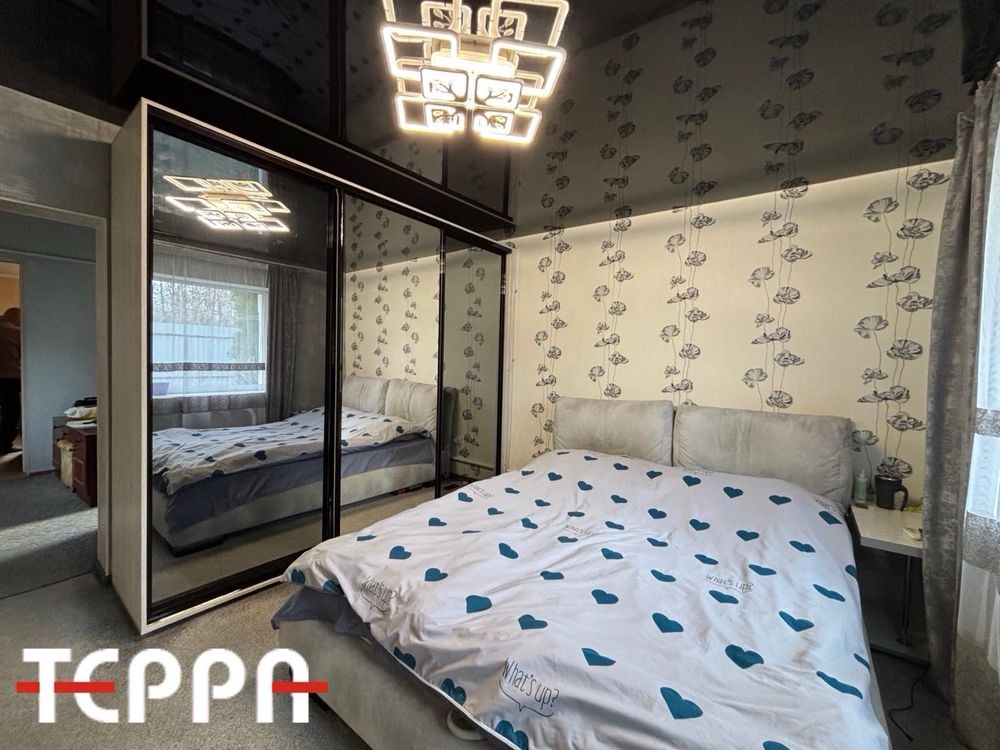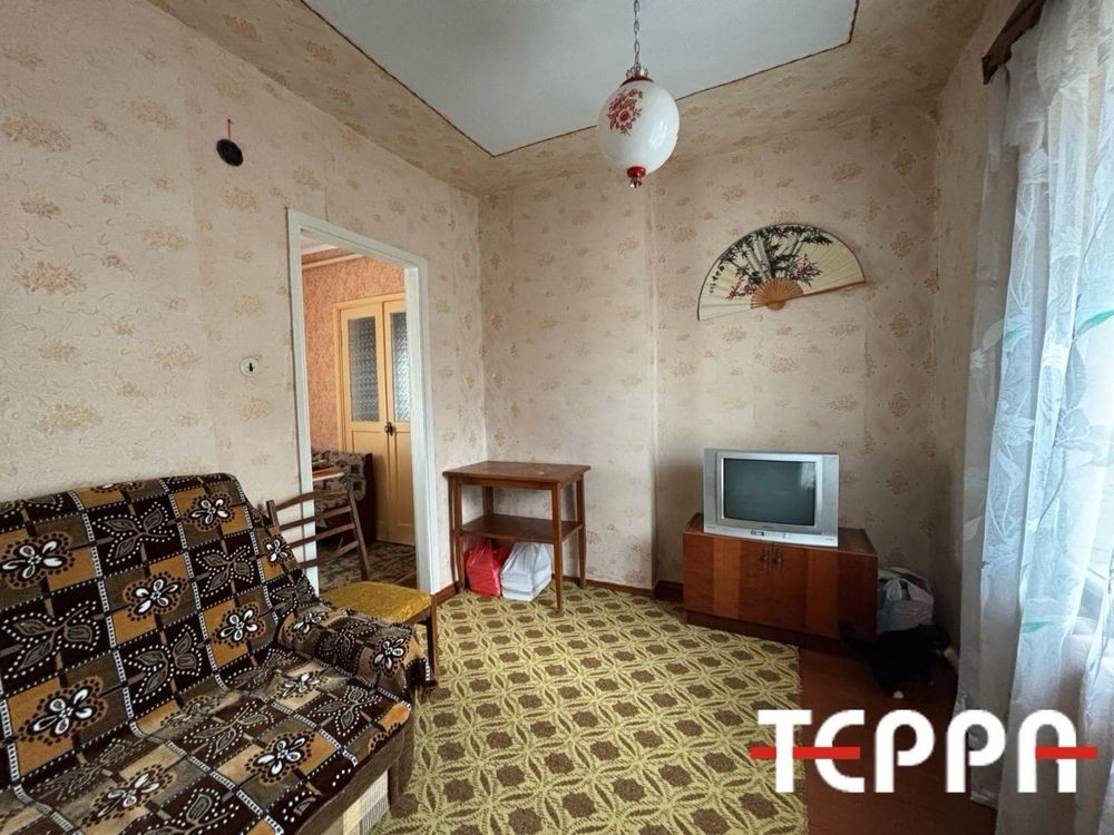 Друга частина менша 23,4 кв метри. Дві кімнати та кухня.