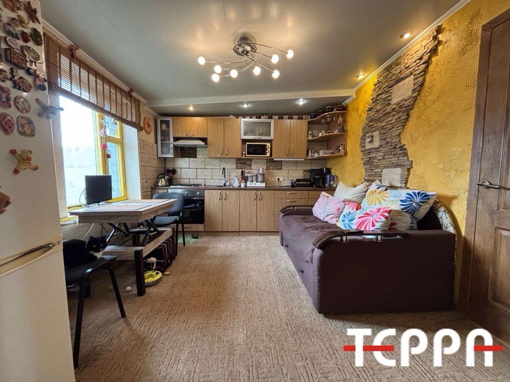 Перша частина будинку має - кухню, чотири кімнати, житлова площа 43.9 кв