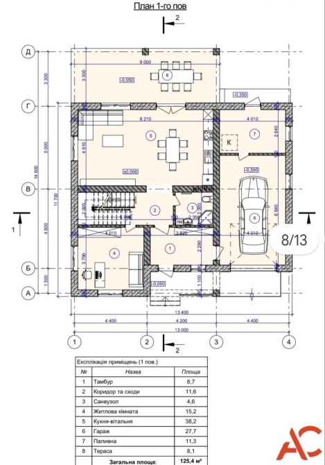 - тераса 8.1 кв.м.