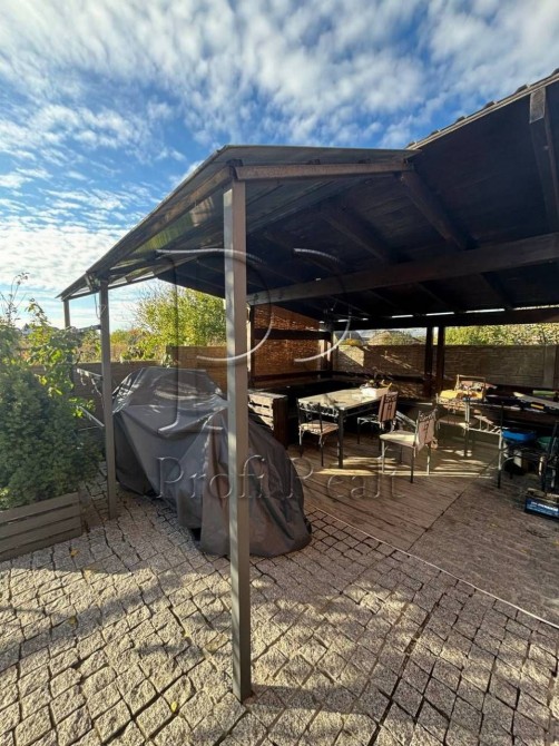 На верхньому три кімнати, санвузол, лоджія. В будинок заведено газ, вода з власної свердловини. Септик 6 кубів. Електроенергія 12кВт. В дворі велика тераса із зоною BBQ.
