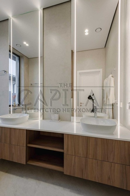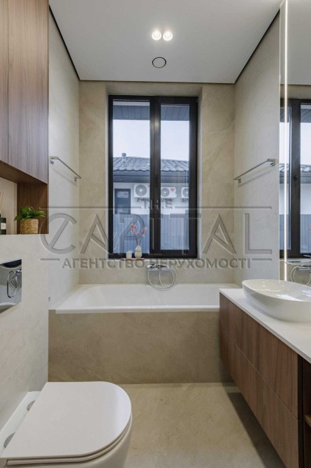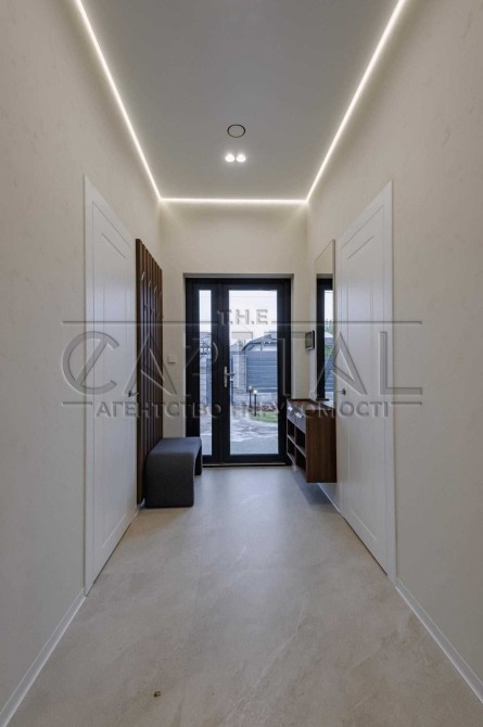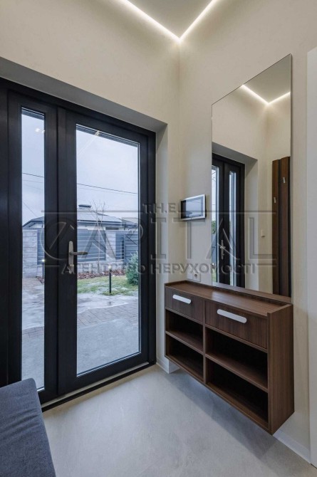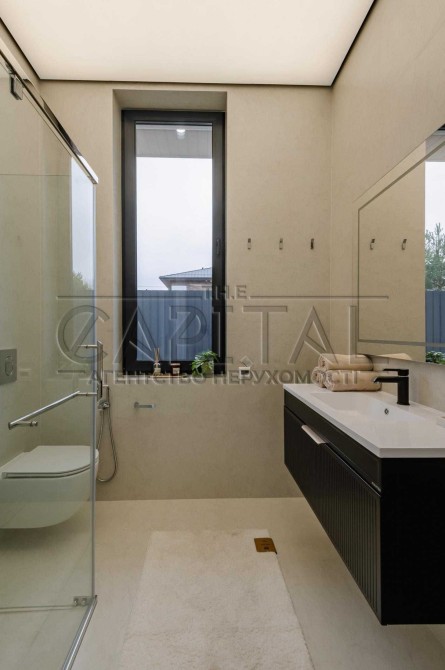 На ділянці облаштоване бетоноване паркування та вимощені доріжки, газон з автополивом, встановлена сітка від кротів. Будинок розташований у затишній зеленій зоні з приємними сусідами, до Києва 15 хвилин на авто, поруч великі маркети, заправки, WineTime та McDonald’s.