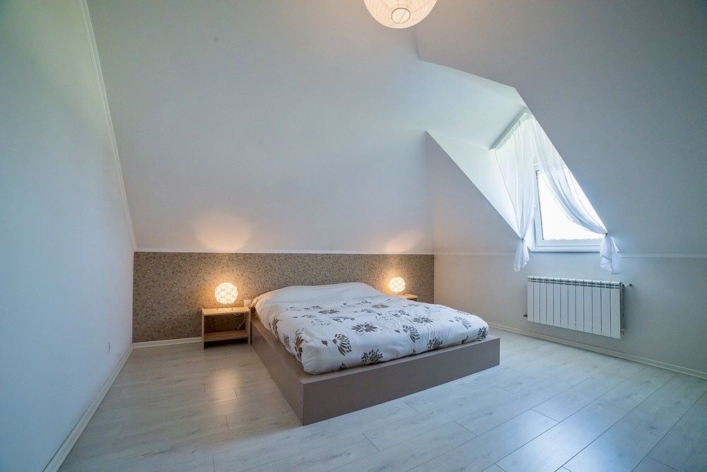 На 1-му поверсі розташовані велика кімната відпочинку з виходом на терасу, кухня з неймовірним видом на ліс, санвузол, котельня з двома котлами( газовий Vaillant та резервний -твердопаливний). Є ще дві кімнати, які можна використовувати за різним призначенням ( гостьова, ігрова - дитяча, офісна, тощо).