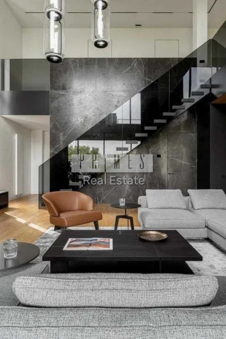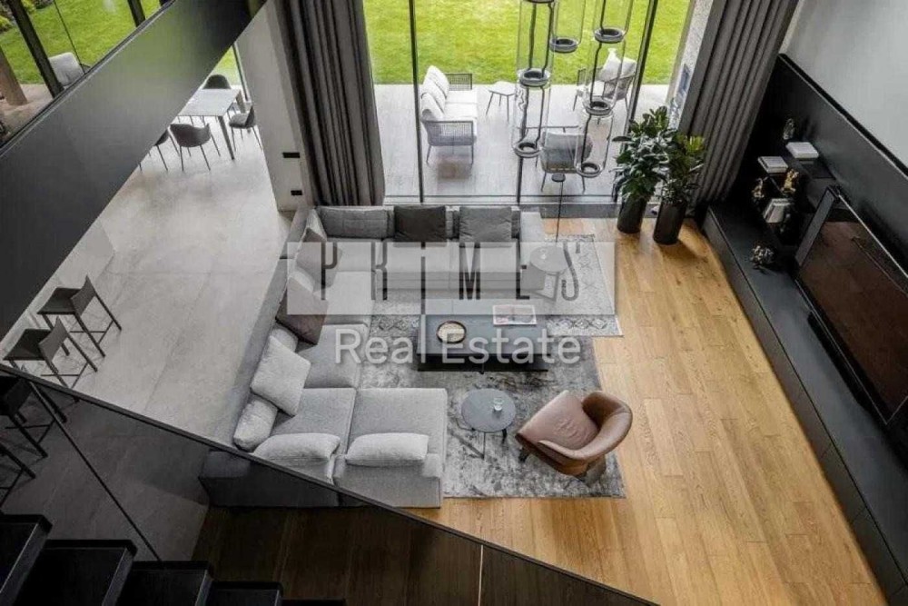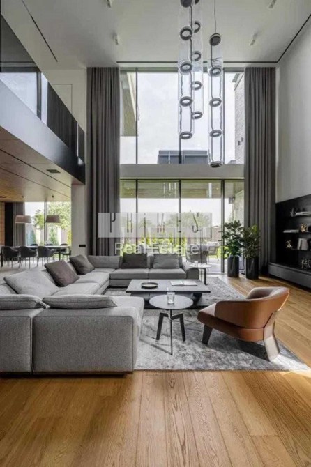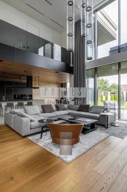 Це двоповерховий вітвір мистецтва, загальною площею 390 кв.м. Будинок з двома террасами, з каміном та дизайн інтер'єру в сучасному стилі, тільки з натуральних матеріалів. Панорамні вікна та багато сміливих рішень в інтер'єрі. Кухня з гігантським островом із керамограніту, підрізаним під кутом 45 градусів. Меблі із захисним покриттям від відбитків пальців. Техніка Miele, лише посудомийна машина Bosch.