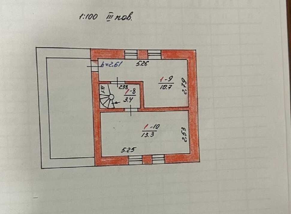 Третій поверх 27,4кв.м. : дві житлові кімнати, сходова.