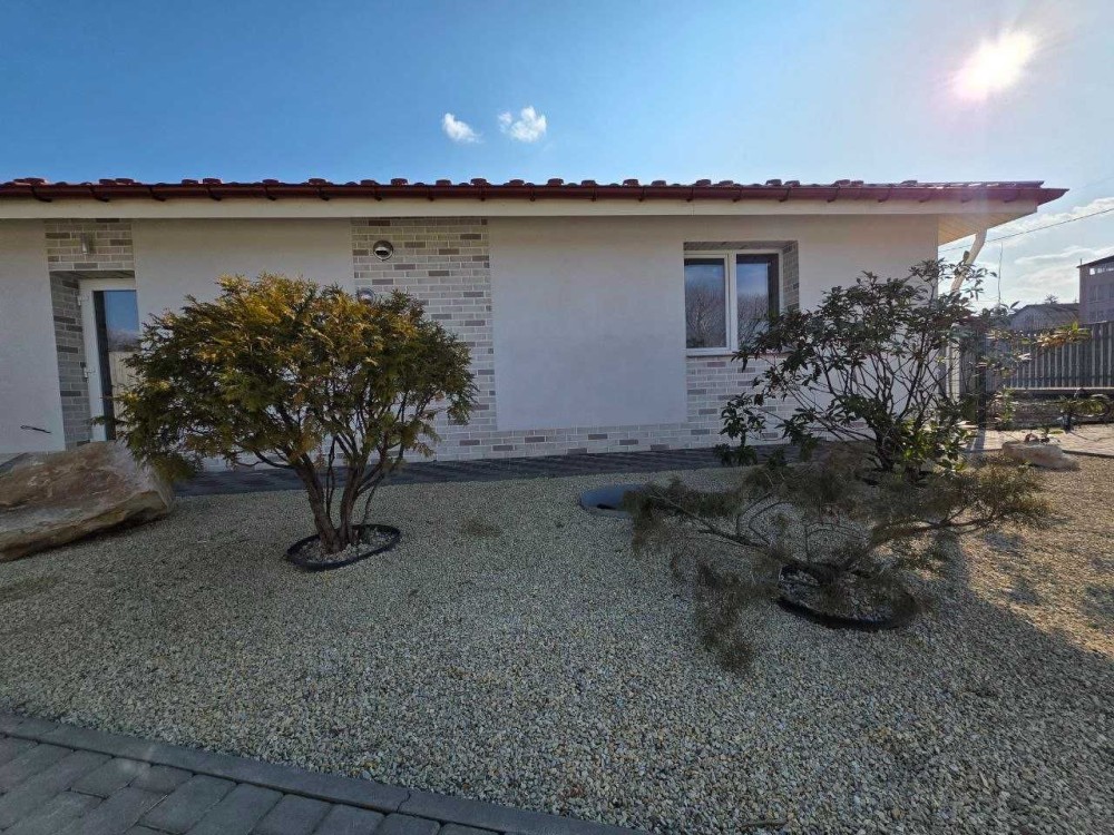 Планування створене для реального життя: 4 окремі спальні, простора кухня-вітальня для спільного часу, 2 санвузли, підсобне приміщення та окремий вихід на терасу. Ділянка оформлена ландшафтним дизайном із декоративними рослинами — усе виглядає доглянуто і гармонійно.