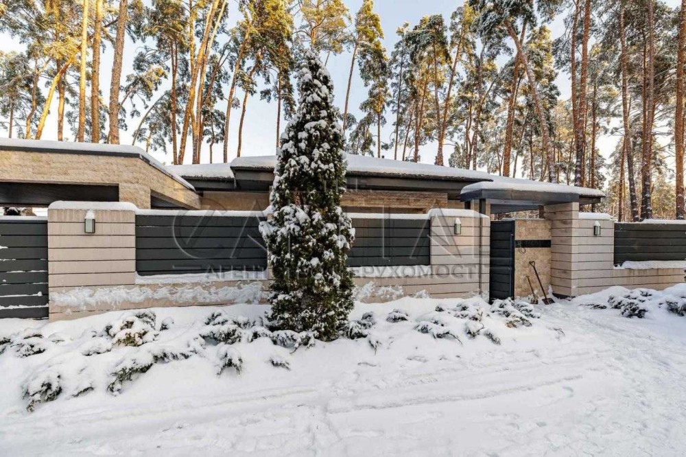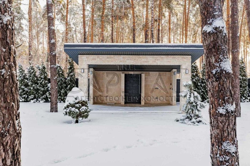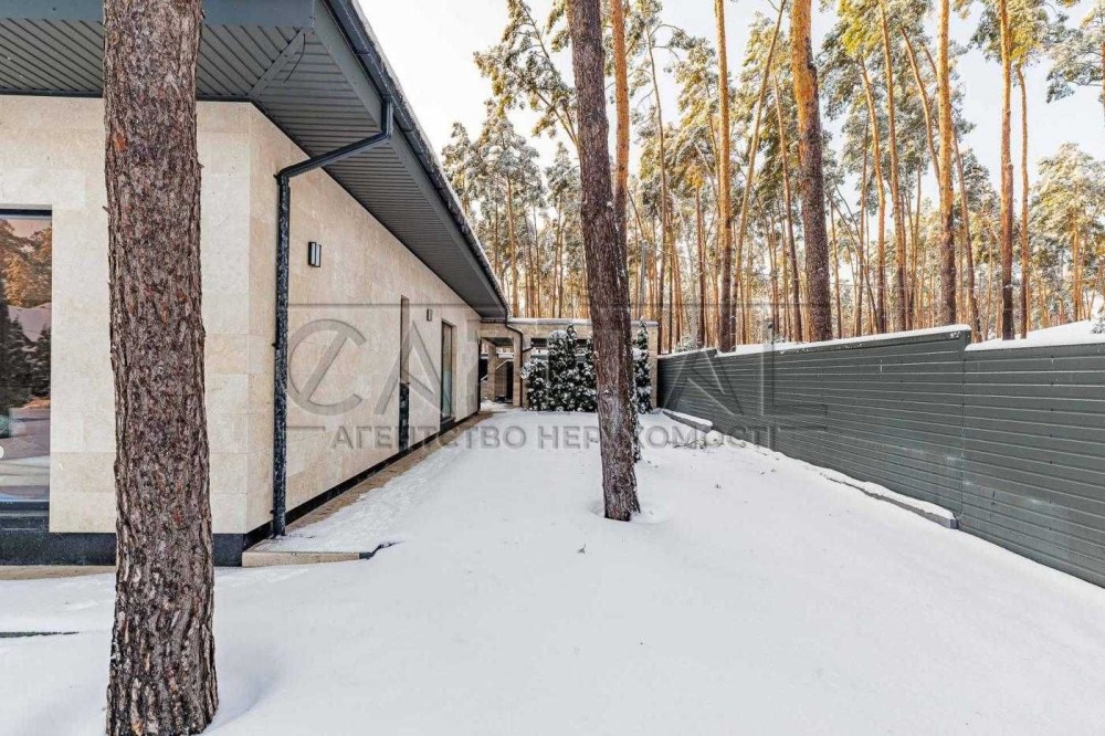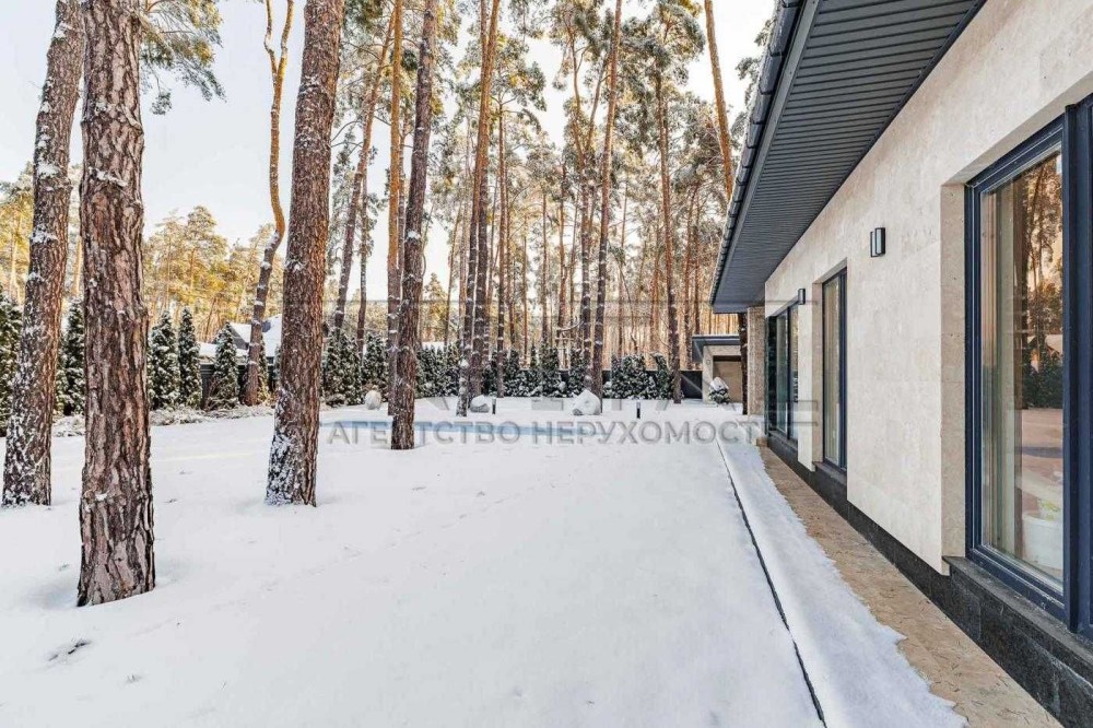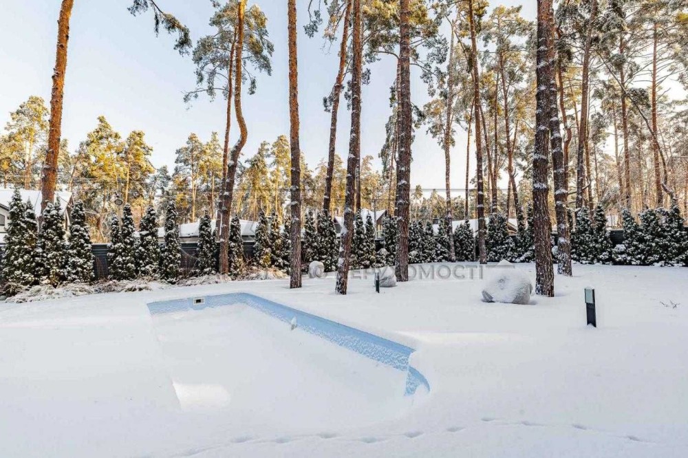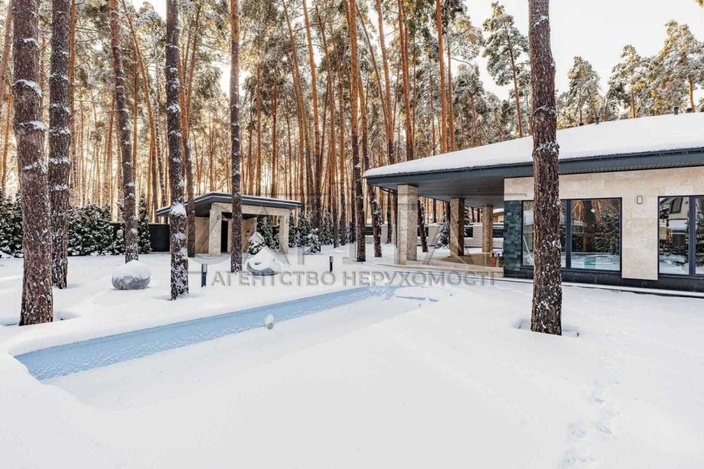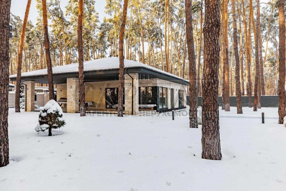 Продаж — одноповерховий будинок з терасою, басейном і ландшафтним дизайном серед сосен у Лісовій Бучі.
