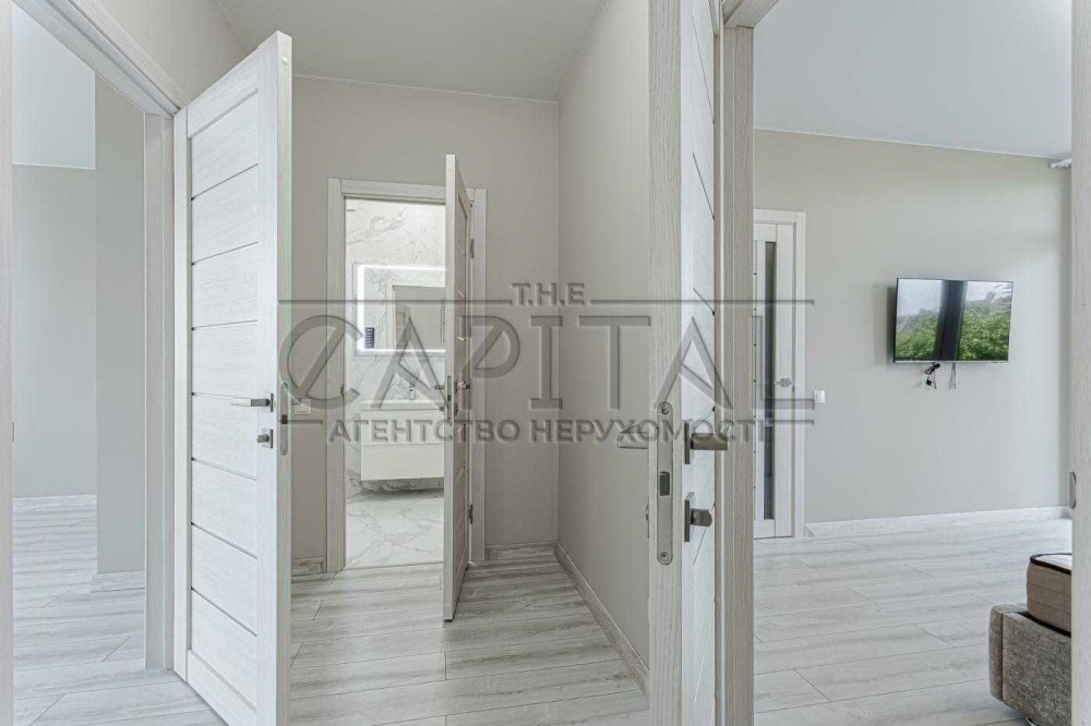 Пропонується сучасний і просторий таунхаус №1 з новим авторським дизайнерським ремонтом в селищі Гатне, що в пішій доступності (20 хвилин) до метро Теремки.