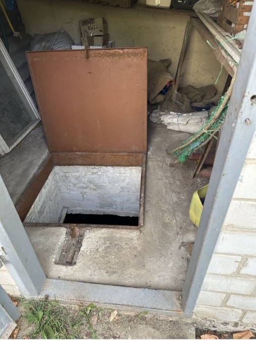 Є сарай з підвалом.