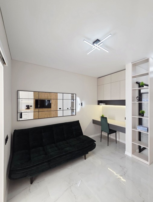 житлова кімната – 18 м² (виділена спальна, відпочинкова зони та робоча зона)
