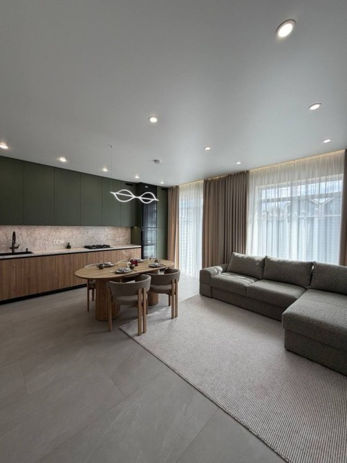 Загальна площа будинку — 125 м². Дуплекс має функціональне та продумане планування, яке ідеально підходить для сім’ї. На першому поверсі розташована простора кухня-вітальня з великими вікнами та виходом на власне подвір’я, де можна облаштувати зону відпочинку, терасу або барбекю. Також на першому поверсі є гостьовий санвузол та комірчина для зберігання речей.