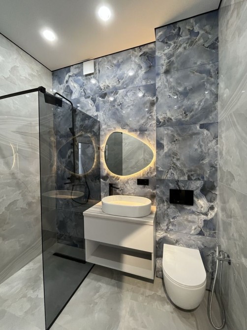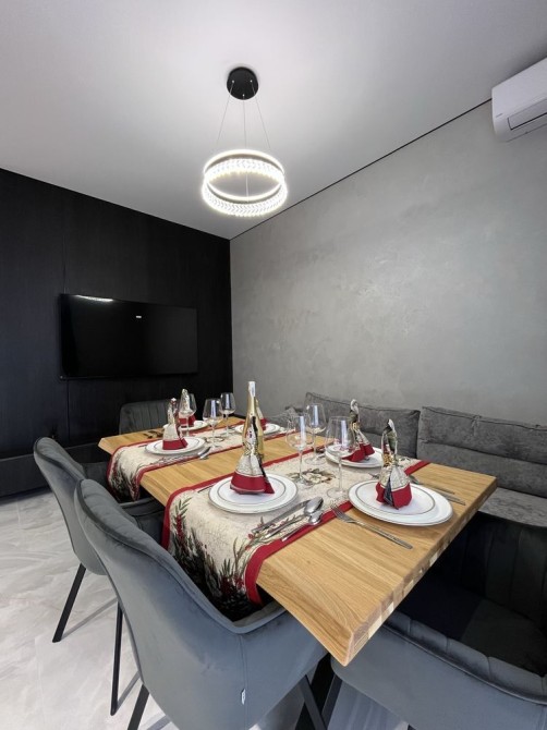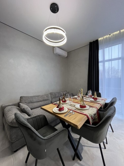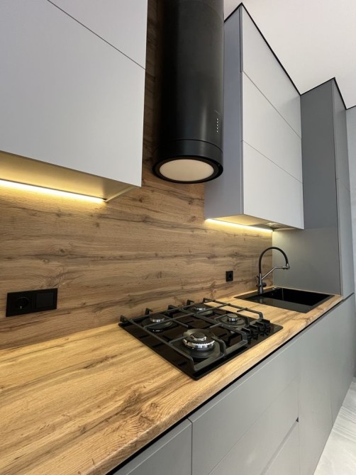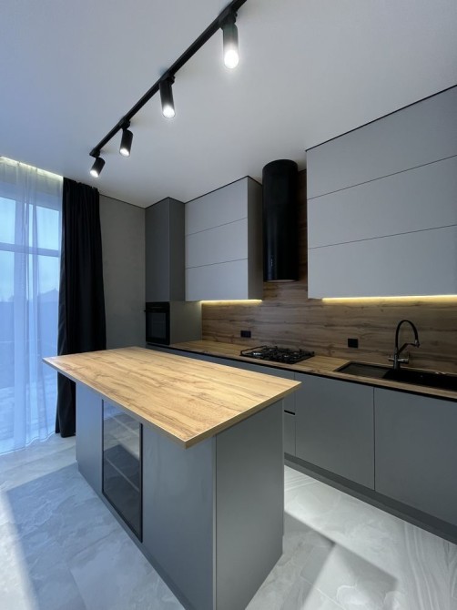 Інтер’єр виконаний у сучасному мінімалістичному стилі: світлі відтінки, тепле дерево, правильне освітлення та відчуття простору в кожній кімнаті. Кухня повністю обладнана, зона вітальні ідеально підходить як для сімейних вечорів, так і для прийому гостей.