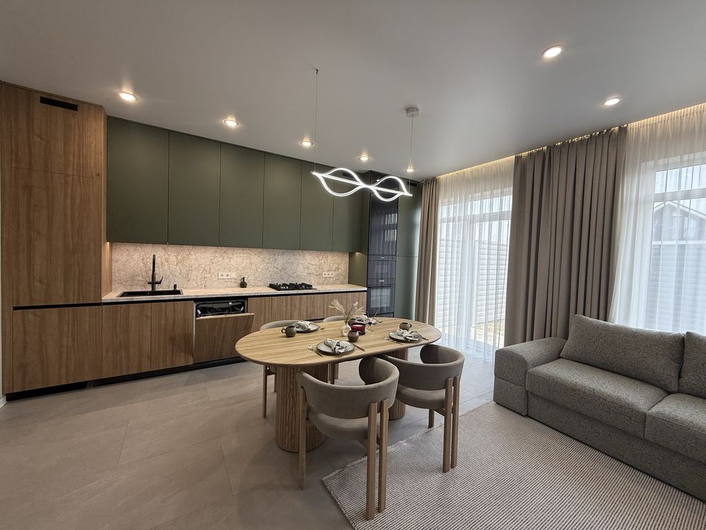 Виконаний дизайнерський ремонт та є вся необхідна техніка та меблі. ( газова плита, духова шафа, мікрохвильова піч, посудомийна машина, холодильник).