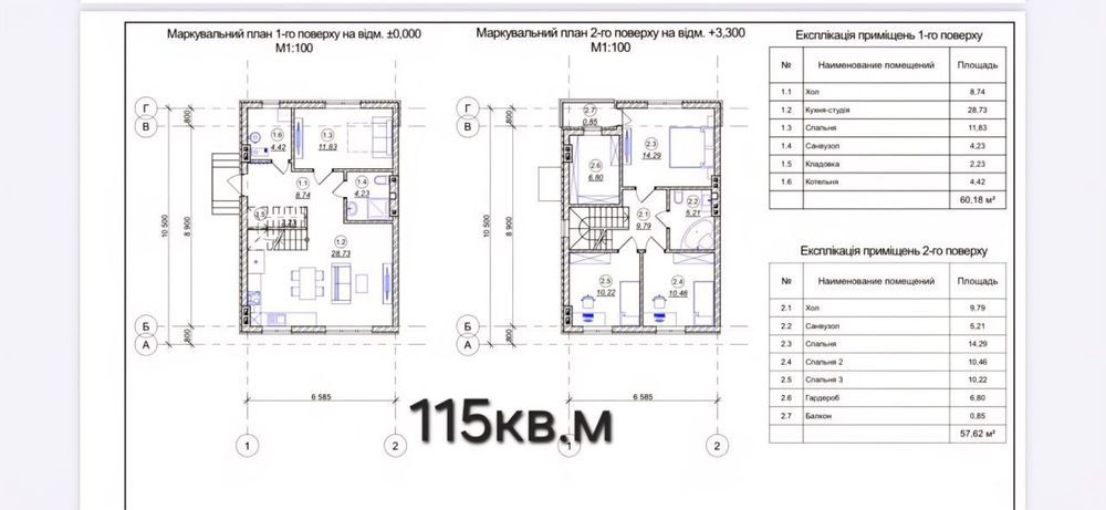 Площа будинку - 115 м2.