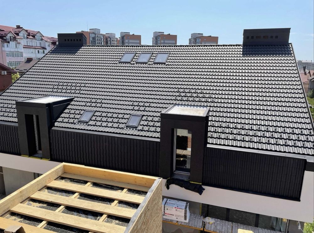 - Накриття даху безшумна цементно-піщана черепиця.