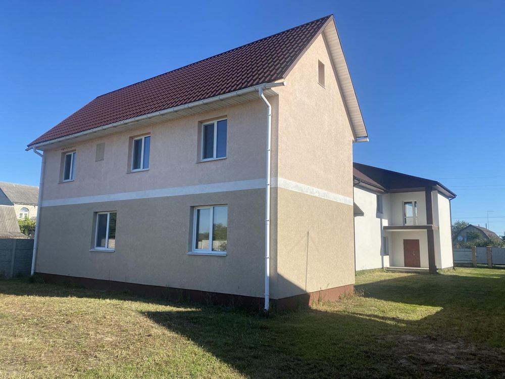 Другий будинок загальною площею 170 м2 , двоповерховий, збудований із цегли, утеплений пінопласт 100 мм, новий якісний фасад. На першому поверсі в будинку знаходиться велика вітальня з зоною для каміну, кухня з виходом на велику терасу, роздільний санвузол, на другому поверсі є три спальні, кабінет та балкон, санвузол.