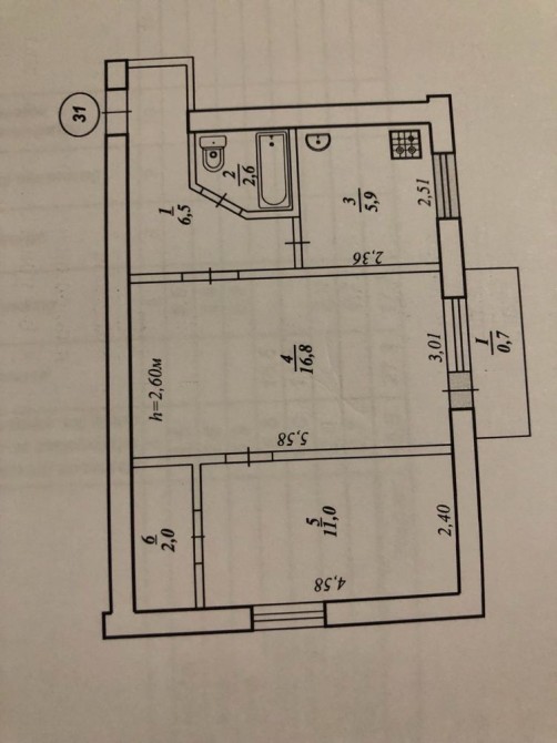 • Площадь кухни 5.9 м2