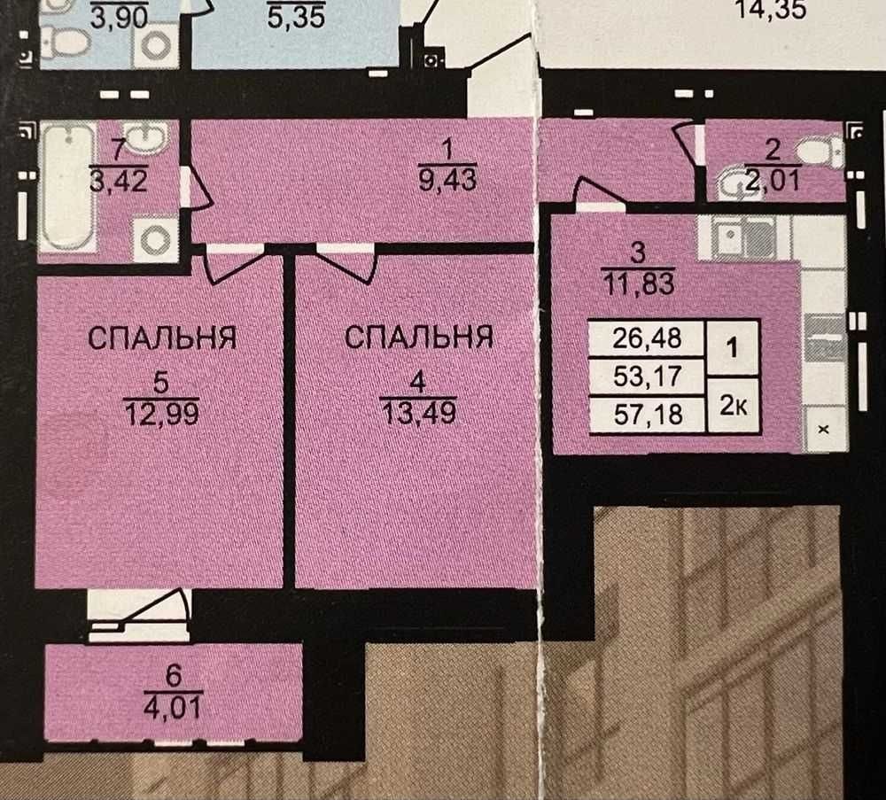 • Общая площадь 58 м2