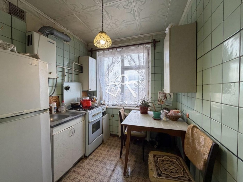 Квартира розташована на 5-ому поверсі п'ятиповерхового будинку, тепла, не кутова, розміщена в середині будинку, двостороння. Частково виконаний ремонт: натяжна стеля у залі, шпалери, лінолеум. Опалення централізоване, лічилники на світло, газ і воду, труби опалення та каналізації замінені на пластик. Вікна та балкон дерев'яні. Меблі залишаються за домовленістю.