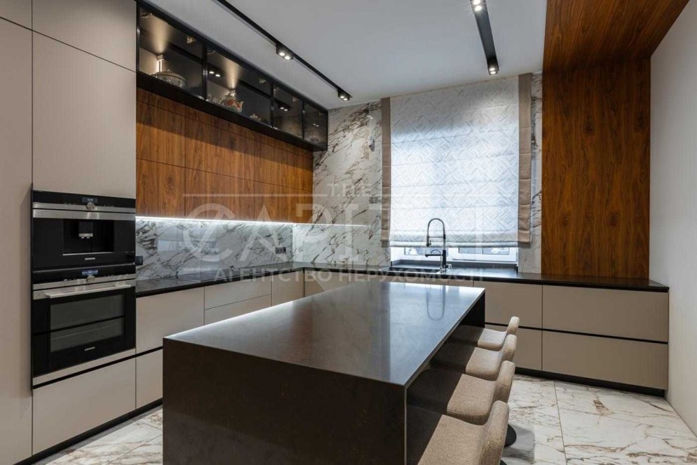 Кухня функціональна й продумана до деталей, укомплектована якісною побутовою технікою Siemens, зручно організована для активного використання та сімейних вечерь.