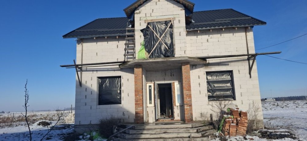 Будинок з газоблоку+ цегла, дах металочерепиця. Заведено електрику до будинку 3 фази (день/ніч) , водопостачання скважина, каналізація септик.