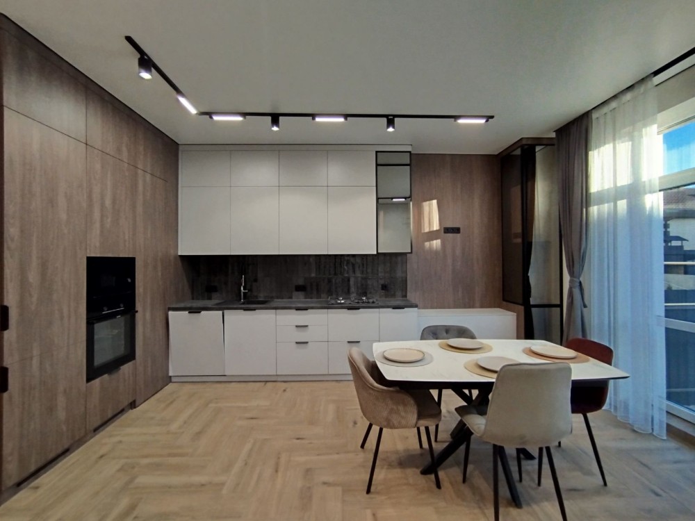 Простора кухня-вітальня з встановленою всією необхідною технікою