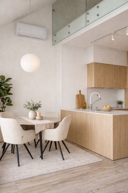 Стильний мінімалістичний інтер’єр, виконаний у світлих тонах
