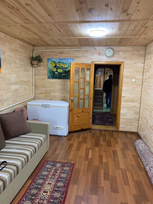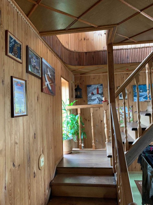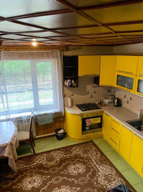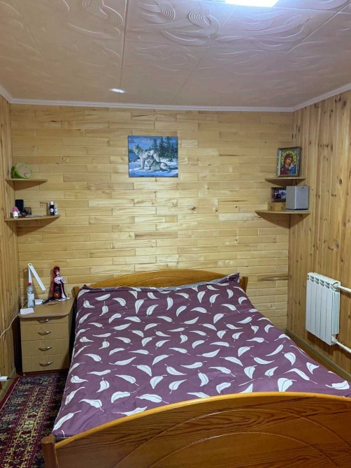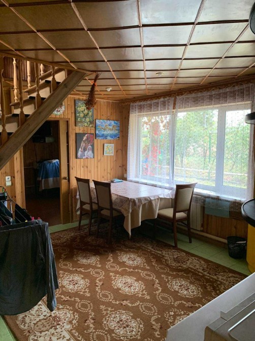 Пропонуємо до продажу гарний екологічний заміський будинок із затишним інтер'єром, доброю аурою та великою ділянкою у с. Геронимівка. Будинок 2-поверховий, 1992 року побудови, загальною площею 122,1 м.кв., площа земельної ділянки 33 сотки. Будинок побудований із ракушняка обкладений цеглою та зовні утеплений пінопластом 6 см. В середині оздоблений деревом – сосна та липа. Покрівля метал. Зручне планування будинку - велика вітальня, кухня-студія, 3 окремі спальні, гардеробна на 2 кімнати, котельня та санвузол, великий балкон. Підлога плитка та ДСП на дереві. Опалення комбіноване, газове та твердопаливне, котел КЧМ-5 (на дровах горить сутки). На другий поверх ведуть якісні дерев’яні зручні та безпечні сходи. Водопостачання: 2 свердловини та власна водонапірна вежа на 1 куб. Каналізаційні ями 2 шт. Гаряча вода через бойлер на 80 літрів. Світло заведено в будинок 3 фази, 380 кВт. При продажу залишаються всі меблі та техніка (2 кондиціонери, холодильник, бойлер, пральна машинка, мікрохвильова піч, меблі). Біля будинку велика територія, у дворі літня кухня та 2 гаражі цегляні, сараї, курятник, діюча теплиця, дровники, літній душ, вуличний туалет, багато сучасних декоративних дерев (туї, ялівець, ялинки і т.д.), дуже великий садок з родючими деревами (яблуні, сливи, груші, абрикоси, шовковиця, горіхи, мигдаль) та виноградник. Є кам’яний декоративний фонтанчик та зона відпочинку. Під городом 6 соток плодючого чорнозему. Головний унікальний елемент садиби - це власний глибокий ставок з рибою (3-4м. глибиною та 4 сотки розміром), оздоблений по периметру натуральним камінням. Поряд з будинком великий погріб-бомбосховище, паркувальні місця та шикарний ліс! Тиха вулиця, порядні сусіди. Додатково фото будинку та ділянки можу скинути на Вайбер. Запрошуємо на перегляд за попередньою домовленістю. Комісія АН.