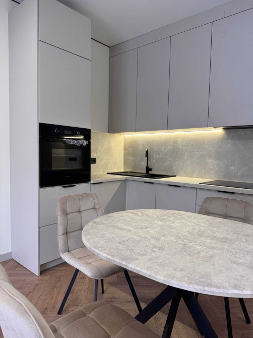 Просторий та сучасний ремонт у світлих, нейтральних тонах, виконаний з якісних матеріалів.