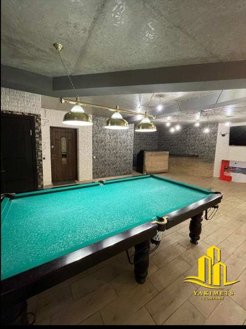 Складається із основного приміщення 51.5 кв.м. Просторий зал із якісним більярдним столом, відокремленою вимурованою барною стійкою. Функціонально можна розмістити столи для відвідувачів. Оригінальні рішення із освітленням.