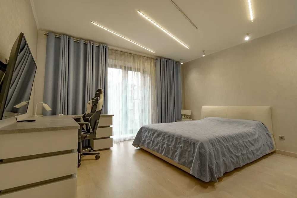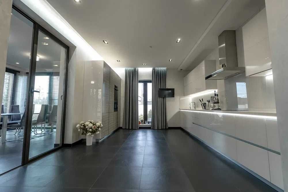 Сучасний ремонт, якісні меблі та фурнітура, мармурові сходи, мармуровий камін та підвіконня, побутова техніка AEG та MIELLE. Сантехніка VILLEROY BOCH.
