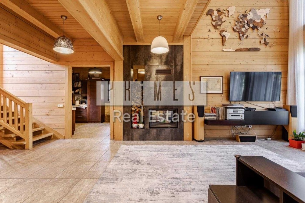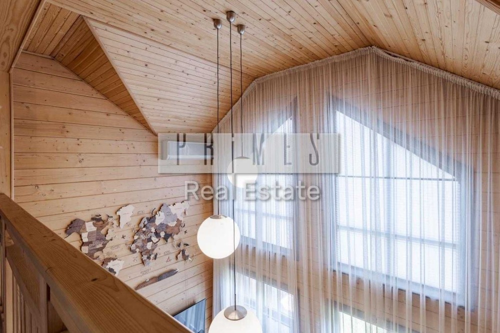 Будинок збудований із клеєного бруса — екологічний, теплий та енергоефективний. Атмосфера натурального дерева створює особливий мікроклімат та відчуття справжнього заміського комфорту в межах міста.