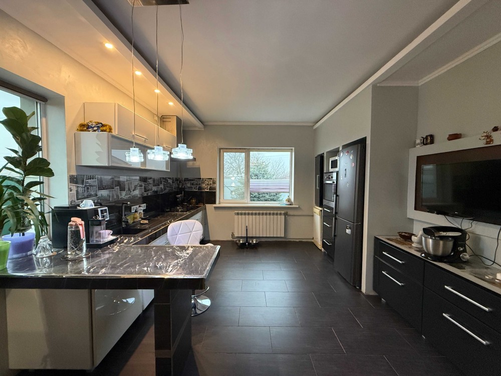 Будинок збудований у 2015 році з газоблоку, перекриття надійні, покрівля — бітумна черепиця. Загальна площа — 237 м², житлова — 97 м², кухня-студія — 21 м². У будинку 5 повноцінних кімнат.