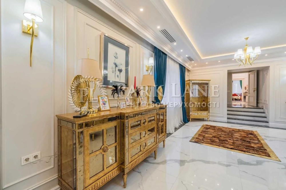 Київська, Обухівський, Козин, Лісова, 2 поверх., площа: 1 436,0 кв.м, 10 кімн., ділянка 30,0 сот; Продається розкішний будинок в Козині 1 км Великої Дамби в закритому КГ "Обрій-К", що охороняється. Будівництво 2018 року, ремонт зроблено у 2020 році. Повністю укомплектований ексклюзивними меблями та технікою. Функціональне планування. Підлога з підігрівом, натуральний паркет, центральна канальна вентиляція, система очищення води, газовий та електро котел, генератор. У пішій доступності річка Козинка, великий дитячий майданчик. У будинку багаторівнева система безпеки.