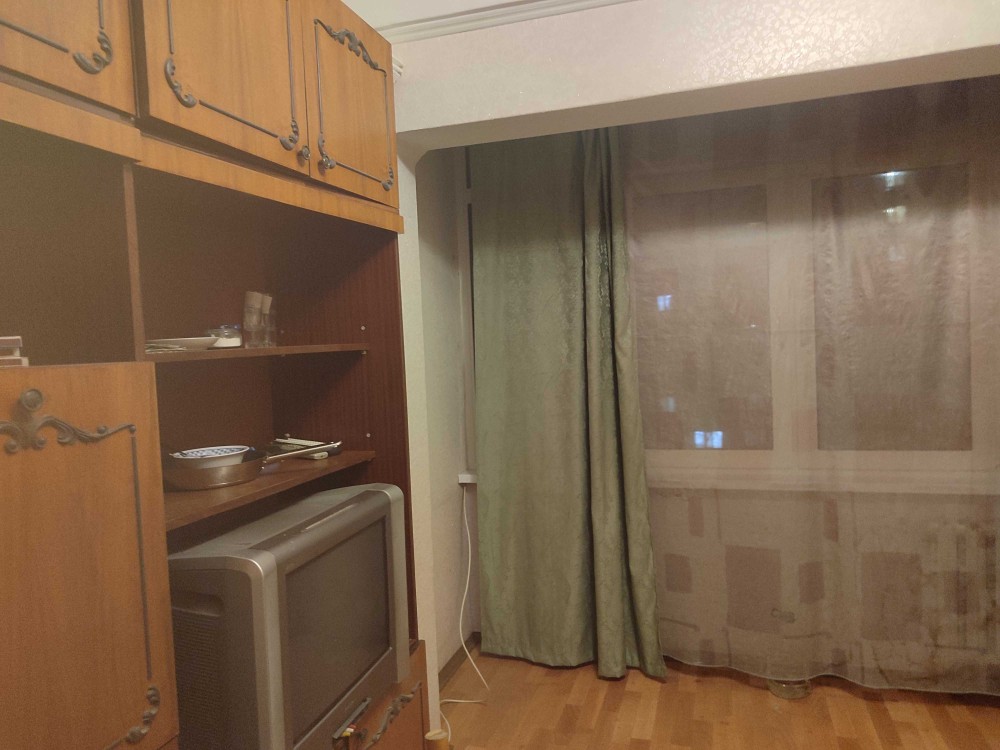 4 м.кв, розташована в середині будинку - тепла. В кімнаті великі панорамні вікна, єркер, жилий стан. Блочне планування, на дві кімнати сан.вузол окремий, кухня загального користування. Є тамбур, який закривається на двері, невеличкий балкон, загального користування, під'їзд та ліфти в гарному стані.