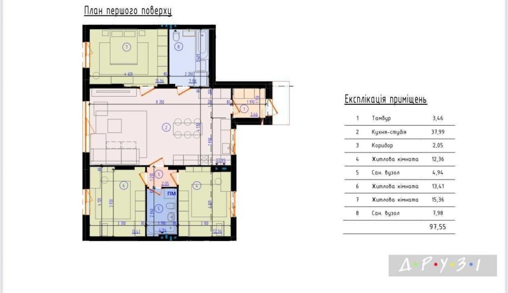 Загальна площа 98м2.