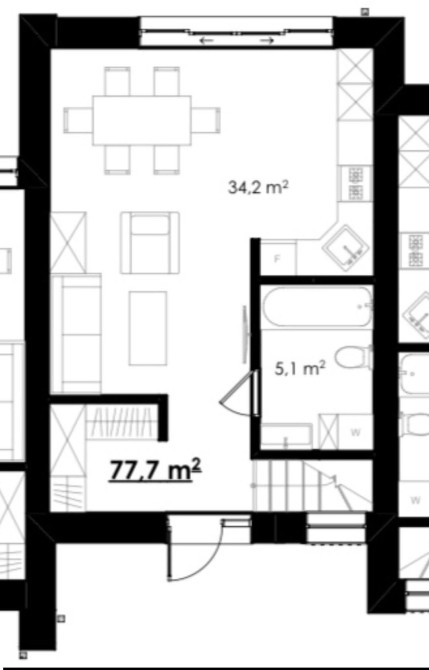 Будинок має зручне двоповерхове планування, щоб усім членам родини було де розміститись. Особливістю є простора кухня-студія, де зручно проводити вечори з близькими, 2 спальні, 2 санвузли, передпокій, балкон та панорамні вікна з виглядом на подвір'я.