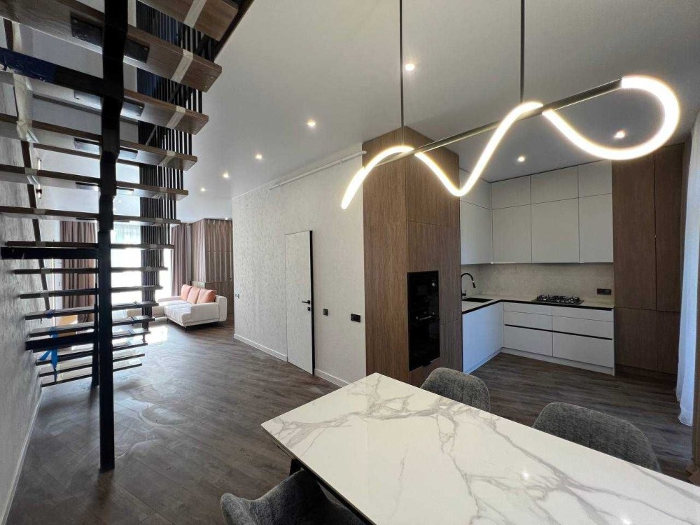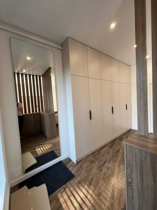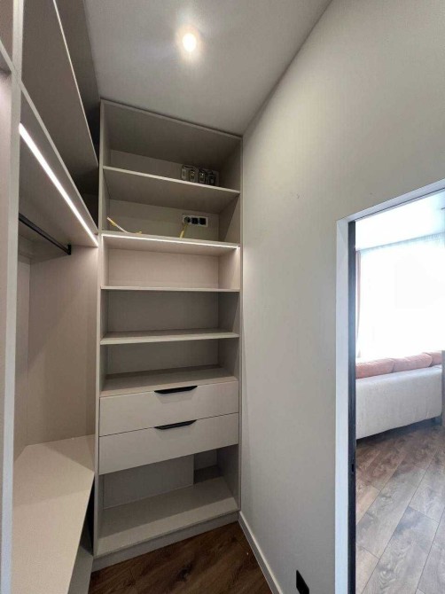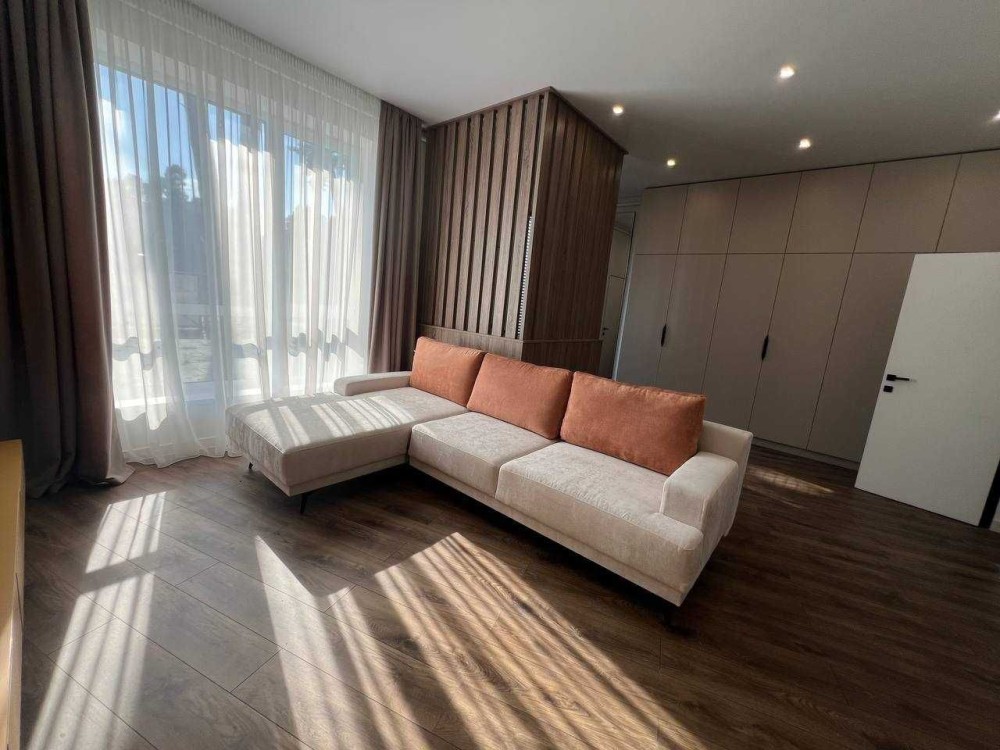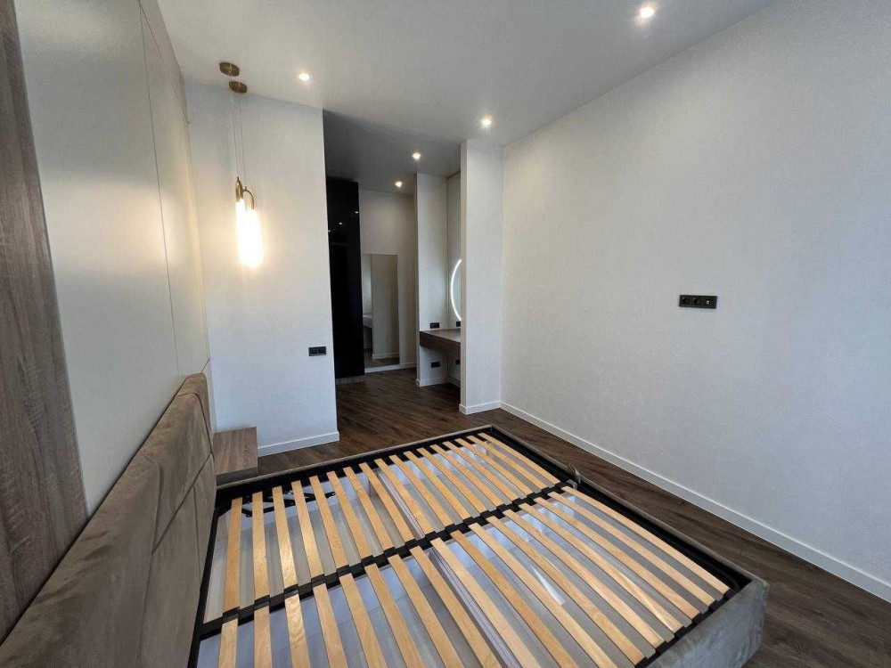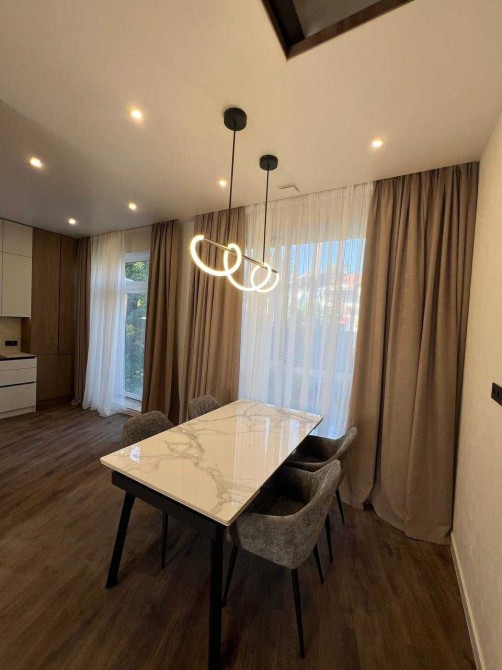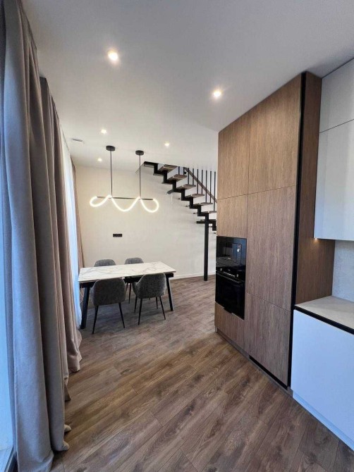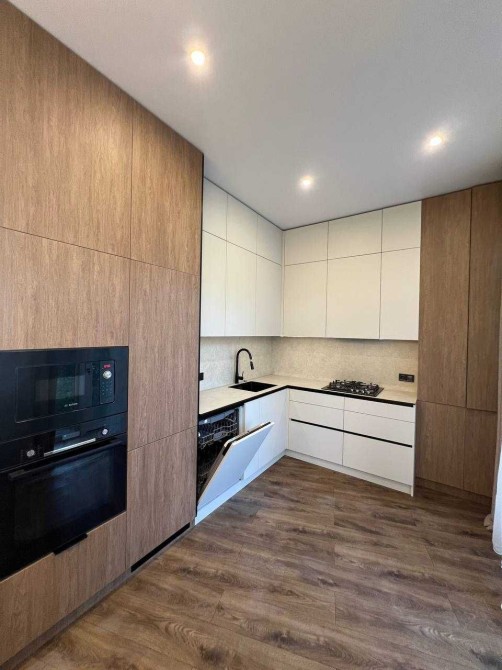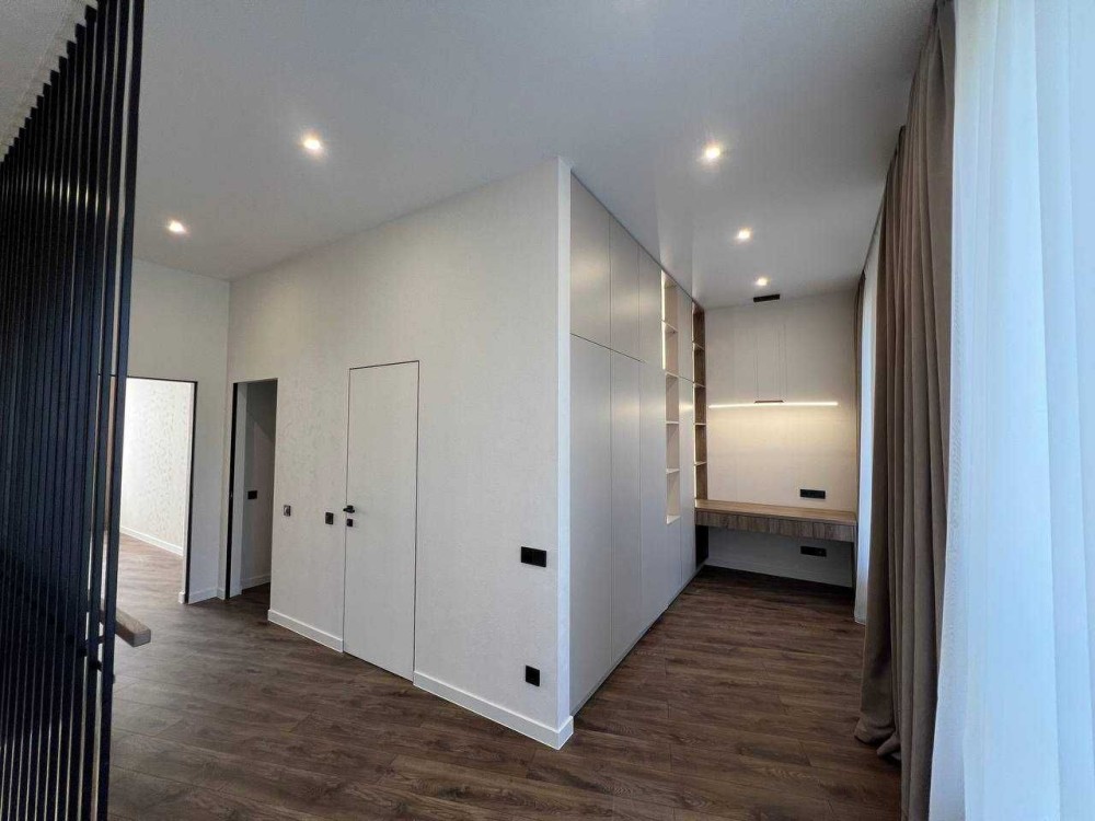 Будинок повністю укомплектований вбудованими меблями, виготовленими на замовлення під планування цього котеджу. Використано якісні матеріали та фурнітуру Blum (все ще в захисній плівці). Кухня оснащена вбудованою технікою BOSCH: холодильник, мікрохвильова піч, духова шафа, посудомийна машина,варильна поверхня.